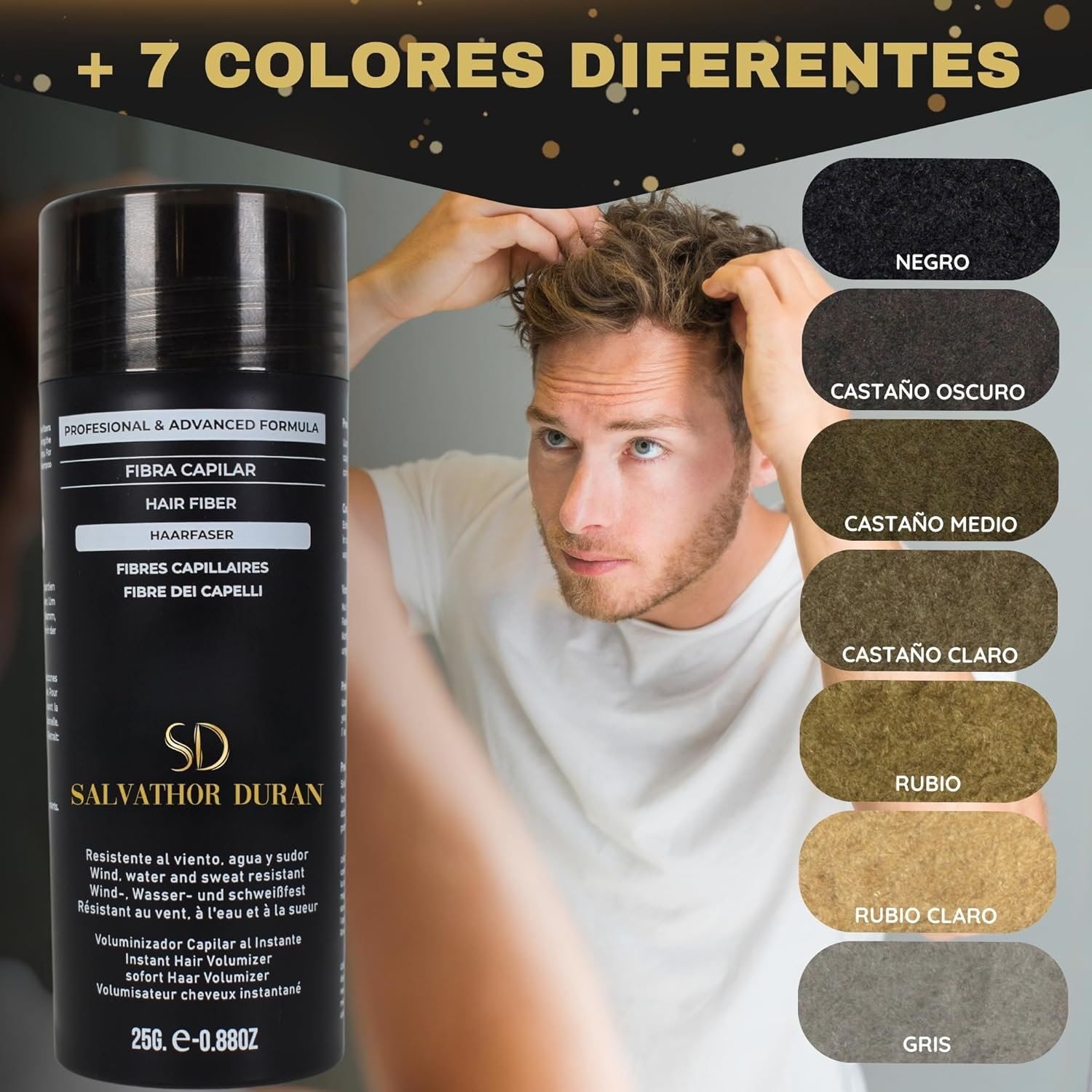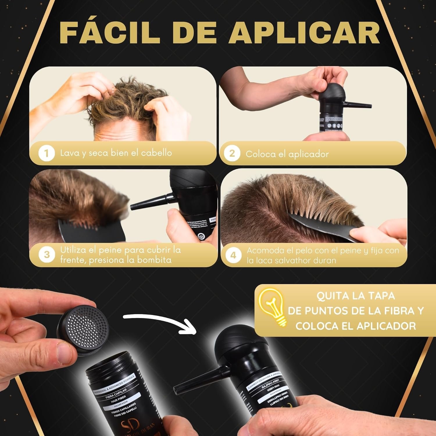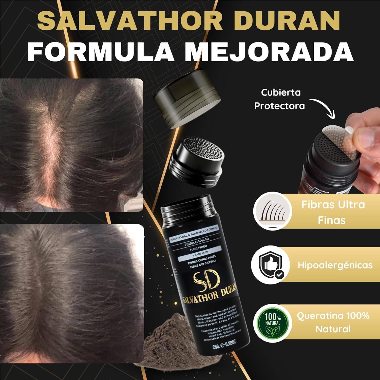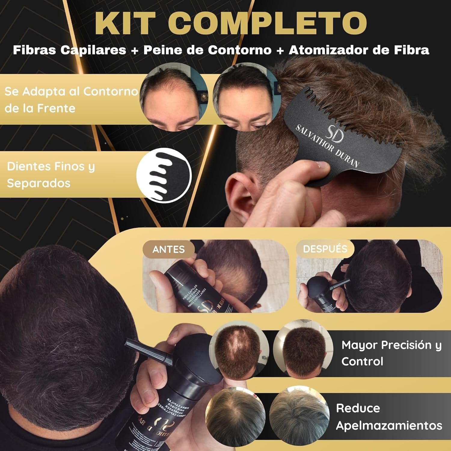 Kit Completo de Fibras Capilares 25 gr, Aplicador y Peine SALVATHOR DURAN